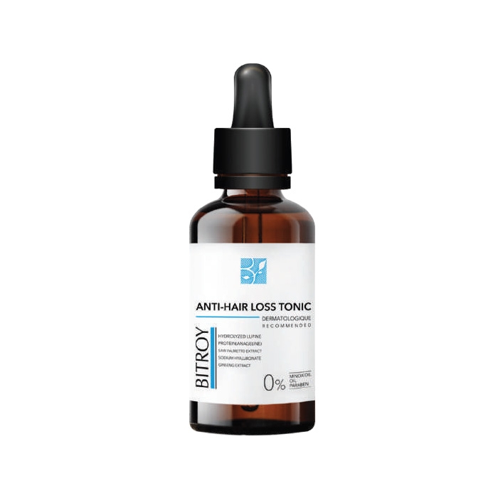 تونیک تقویت کننده و ضد ریزش مو BITROY، حاوی اکتیو و عصارههای گیاهی است، باعث تحریک رشد موی جدید، مهار آنزیم 5 آلفاردوکتاز و کاهش تولید هورمون DHT میشود، تعادل هورمونی را تنظیم میکند، گردش خون در کف سر و تغذیه رسانی به فولیکول مو را افزایش و ریزش آن را کاهش میدهد، به تنظیم ترشح چربی و رفع خارش کف سر کمک میکند و موجب تعادل رطوبت رسانی به پوست کف سر و مو، تحریک متابولیسم سلولها، تقویت فولیکول و ریشه مو و جلوگیری از نازک شدن و شکنندگی مو میشود.