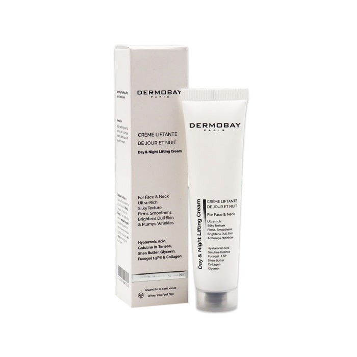 کرم لیفتینگ روز و شب DERMOBAY، با بهره گیری از ترکیبات منحصربهفردی مثل هیالورونیک اسید، کلاژن، گلیسیرین و شی باتر، پوست صورت و گردن را تغذیه رسانی و نرم میکند، رطوبت از دست رفته آن را جبران میکند، پوست را سفت میکند و از افتادگی آن جلوگیری میکند، بخشهای شل پوست را لیفت میکند، چروکهای ریز را پر میکند، لکهای ناشی از افزایش سن را کاهش میدهد، رنگ پوست را روشنتر میکند، بافت سبک و ابریشمی دارد و به سرعت جذب میشود.
