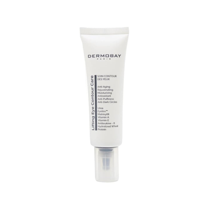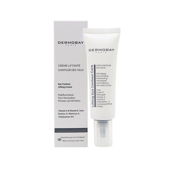کرم دور چشم لیفتینگ DERMOBAY، محصولی مناسب برای کاهش چین و چروک دور چشم است، پوست را سفت و لیفت میکند و از بروز چروک جلوگیری میکند، پف و تیرگی دور چشم را برطرف میکند، خاصیت تغذیه رسانی و مرطوب کنندگی دارد، باعث تقویت سد حفاظتی و جوانسازی پوست میشود، تولید کلاژن را افزایش میدهد، خاصیت ضد التهابی دارد، پوست دور چشم را نرمتر و لطیفتر میکند، فرمولاسیون ملایم و غیر تحریککننده دارد، افتادگی پلک را برطرف میکند، سبب روشن شدن لکهای قهوهای ناشی از نور خورشید میشود، از این طریق باعث افزایش درخشندگی پوست میشود و خواص آنتی اکسیدانی دارد.