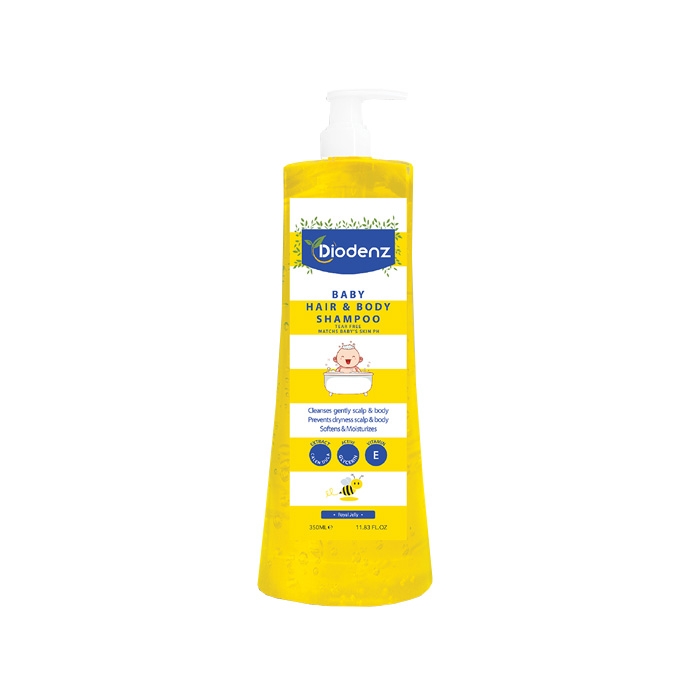 شامپو سر و بدن کودک Diodenz، حاوی شویندههای بسیار ملایم، فاقد سولفات و متناسب با مو و پوست لطیف کودک است، باعث سوزش چشم نمیشود، خواص تسکین دهنده و التیام بخش دارد، پوست بدن و سر را نرم و به آن آبرسانی میکند، مانع از خشکی و پوسته ریزی میشود و از گره خوردن موها جلوگیری میکند.