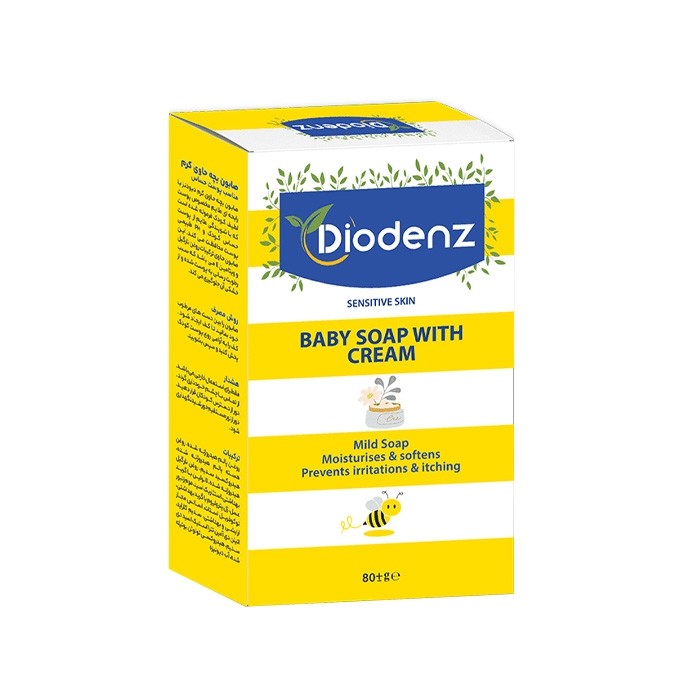 صابون کودک حاوی کرم Diodenz، شوینده ملایم و مناسب پوست لطیف کودک است، از پوست حساس کودک محافظت میکند، به تنظیم pH طبیعی پوست کمک میکند، سبب رطوبت رسانی به پوست میشود و از خشکی آن جلوگیری میکند.