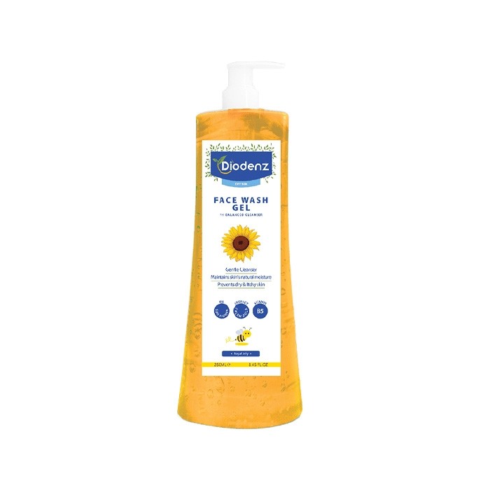 ژل شستشوی صورت مناسب پوست خشک Diodenz، مواد آرایشی و آلودگیها را از روی پوست پاک میکند، با ایجاد سد محافظ از تبخیر آب پوست جلوگیری میکند، رطوبت طبیعی سطح پوست را حفظ و سد دفاعی پوست را تقویت میکند، دارای pH مناسب پوست است، مانع از خارش، خشکی و دهیدراته شدن پوست میشود و تسکین دهنده و آرام بخش پوست است.
