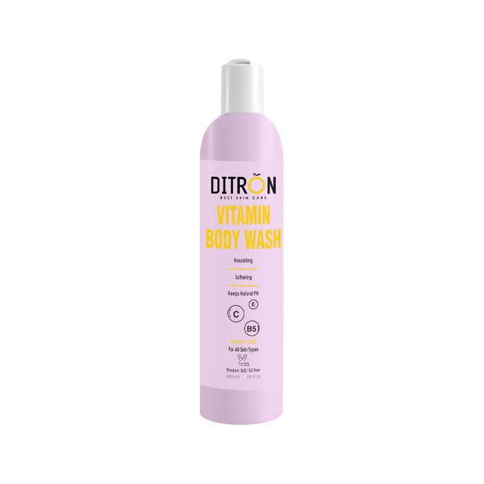 شامپو بدن ویتامینه DITRON، با تأمین رطوبت مورد نیاز پوست از خشکی آن جلوگیری میکند، باعث تنظیم pH طبیعی پوست میشود، نرم کننده و شاداب کننده است، به پوست تغذیه رسانی و آن را تقویت میکند، از پوست بدن محافظت میکند و خاصیت روشن کننده، نرم کننده و ضد چروک دارد.
