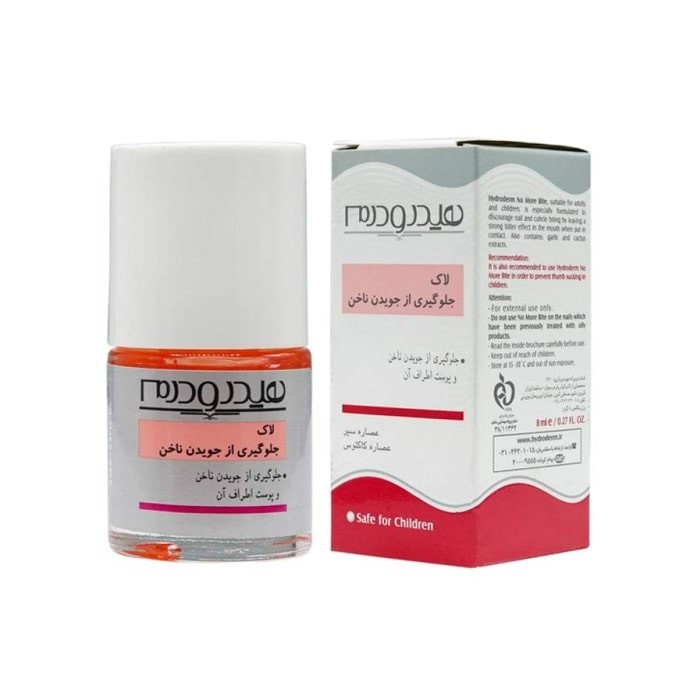 لاک جلوگیری از جویدن ناخن HYDRODERM، محصولی مناسب برای ترک جویدن ناخن در بزرگسالان و خردسالان است. این محصول با طعم تلخ خود سبب جلوگیری از جویدن ناخن یا مکیدن انگشتان در کودکان میشود، بافت و استحکام ناخنها را بهبود میبخشد، از پایداری خوبی برخوردار است و با شستشو از بین نمیرود.