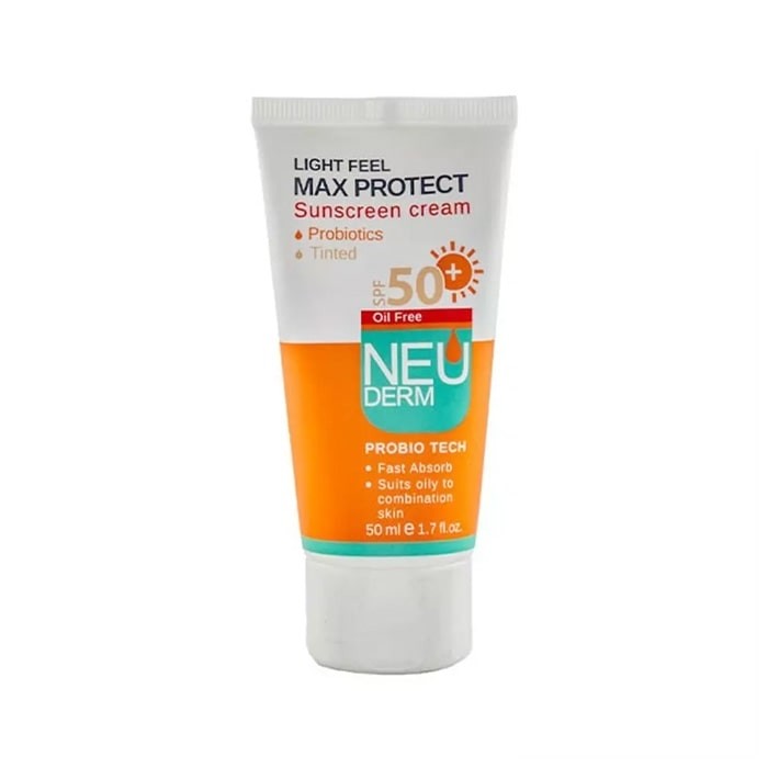 کرم ضد آفتاب رنگی مکس پروتکت فاقد چربی NEUDERM SPF50، با قدرت حفاظت بالا، به خوبی از پوست در برابر اشعه UVA وUVB محافظت و از ایجاد لکهای قهوهای ناشی از آفتاب جلوگیری میکند. این محصول فاقد چربی است، ترشح سبوم را کنترل میکند، مانع از برق زدن پوست میشود، خاصیت ضدالتهاب دارد، سبب التیام تحریکات پوستی میشود، از ایجاد چین و چروک جلوگیری میکند، ضدآلرژی و آنتی باکتریال است، مانع ایجاد جوش و آکنه در پوست میشود و سبک و زودجذب است. کرم ضد آفتاب فاقد چربی مکس پروتکت نئودرم، پیشنهاد ما به افرادی است که به دنبال خرید ضد آفتاب مناسب پوست چرب و آکنهای هستند.