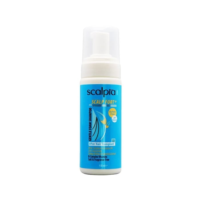 شامپو فوم موهای تازه کاشته شده بسیار حساس و شکننده Scalpia، با قدرت شویندگی ملایم، جهت شستشوی موهای بسیار حساس و شکننده مانند موهای تازه کاشته شده تولید و عرضه گردیده است. شامپو فوم اسکالپیا، PH مناسب پوست و موی سر را تنظیم کرده و به دلیل داشتن ترکیبات موثر، سبب تقویت و تغذیه آن میشود و از این طریق به رشد موهای تازه کاشته شده کمک میکند.