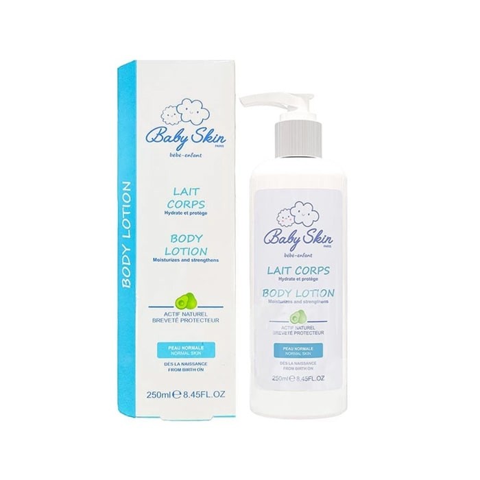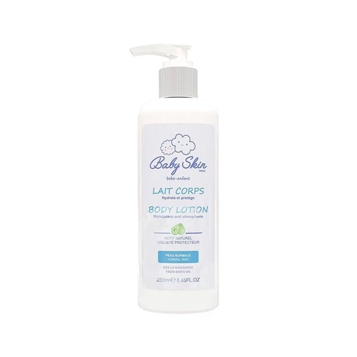 لوسیون مرطوب کننده بدن کودک Baby Skin، حاوی ویتامین E و B5، شی باتر، آووکادو، زیتون و هیالورونیک اسید است، باعث آبرسانی عمقی و ۲۴ ساعته به پوست و پیشگیری از خشکی و ایجاد علائم اگزما میشود، اثرات مرطوب کنندگی و تسکین دهندگی دارد و پوست را ترمیم و بازسازی میکند.