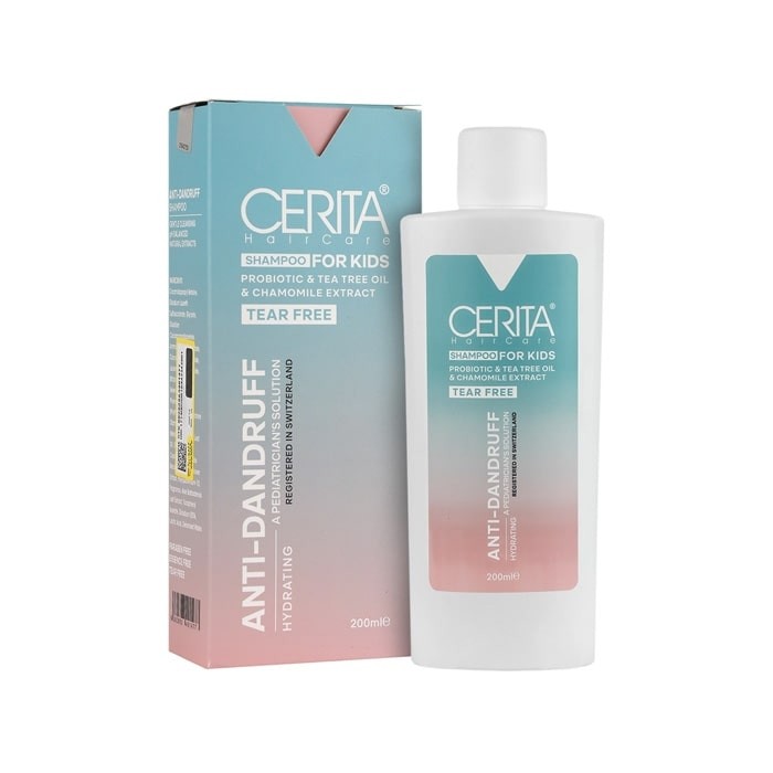 شامپو ضد شوره مخصوص کودکان CERITA به رفع و درمان شوره و پوستهریزی سر کودکان کمک میکند، با رطوبت رسانی قوی به سر، سبب کاهش التهابات و خارش میشود، حساسیت ایجاد نمیکند، ضد باکتری و ضد قارچ است و قارچ عامل شوره سر را از بین میبرد. در این محصول از فناوری پروبیوتیکی استفاده شده است. این فناوری با تنظیم جمعیت میکروبی پوست سر، با مکانیزمی طبیعی شوره را درمان میکند.