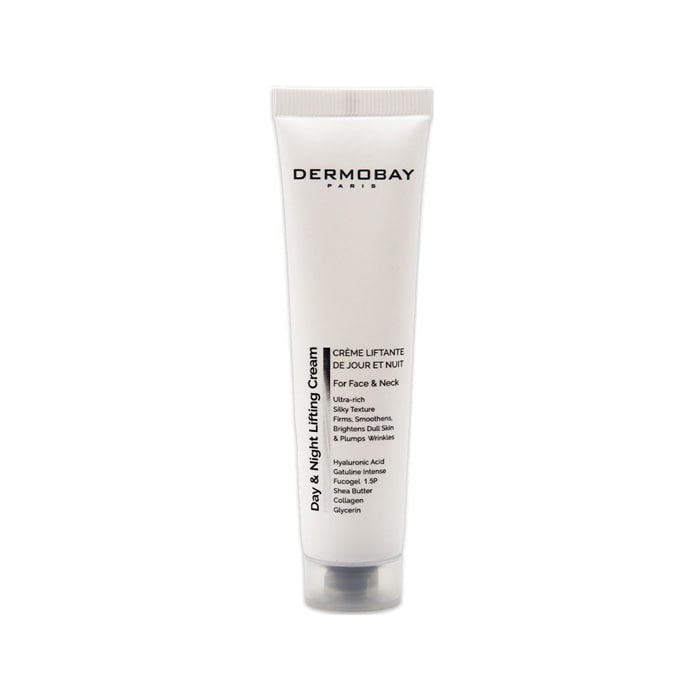 کرم لیفتینگ روز و شب DERMOBAY، با بهره گیری از ترکیبات منحصربهفردی مثل هیالورونیک اسید، کلاژن، گلیسیرین و شی باتر، پوست صورت و گردن را تغذیه رسانی و نرم میکند، رطوبت از دست رفته آن را جبران میکند، پوست را سفت میکند و از افتادگی آن جلوگیری میکند، بخشهای شل پوست را لیفت میکند، چروکهای ریز را پر میکند، لکهای ناشی از افزایش سن را کاهش میدهد، رنگ پوست را روشنتر میکند، بافت سبک و ابریشمی دارد و به سرعت جذب میشود.