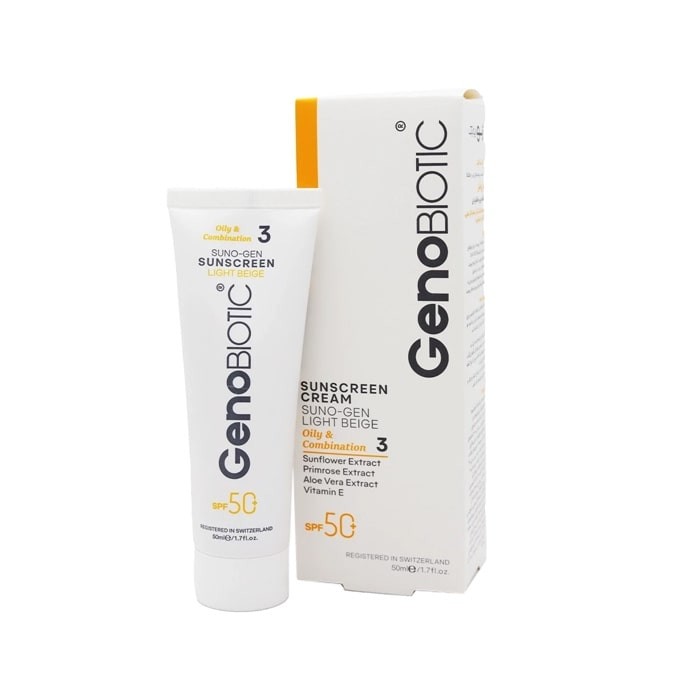 کرم ضد آفتاب مخصوص پوست چرب بژ روشن Geno Biotic، دارای فیلترهای مناسب برای محافظت از پوست در مقابل اشعههای ماورای بنفش و مادون قرمز است، پوشش کاملی روی پوست ایجاد میکند، نواقص و لکها را به خوبی میپوشاند، مانع از انسداد منافذ و تشکیل آکنه میشود، بدون چربی و سبک است، ضد آب و ضد تعریق است، موجب حفظ رطوبت در لایه اپیدرم میشود، از پیری زودرس جلوگیری میکند، خاصیت آنتی باکتریال و ضدالتهاب دارد و از ایجاد لک و علائم پیری ناشی از آفتاب سوختگی پیشگیری میکند. با خرید ضد آفتاب رنگی، دیگر نیازی به استفاده از کرمهای رنگی آرایشی نخواهید داشت.