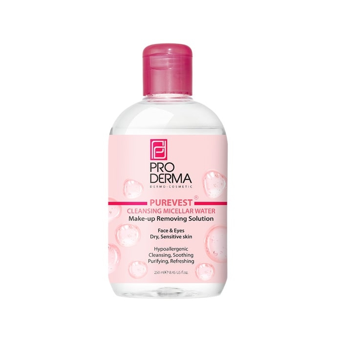 میسلار واتر پیور وست مناسب پوست خشک و حساس PRODERMA، محلولی بسیار ملایم بوده که برای پاک کردن مواد آرایشی و آلودگیهای سطحی پوست تولید شده است. میسلار واتر پرودرما پوست خشک را میتوان به راحتی و بدون نیاز به آبکشی مصرف کرد. در ترکیبات این فرآورده از مواد آبرسان و نرم کننده استفاده شده و از تبخیر رطوبت پوست جلوگیری میکند؛ در نتیجه پس از مصرف این فرآورده خشکی و احساس کشیدگی روی پوست ایجاد نمیشود و طراوت آن حفظ میشود. در فرمولاسیون میسلار واتر پرودرما پوست خشک از عصاره ژل آلوئه ورا، پانتنول، توکوفریل استات، نیاسین آمید، سدیم آسکوربیل فسفات و هیالورونیک اسید استفاده شده است و بر مزایای منحصر به فرد این محصول میافزایند.
