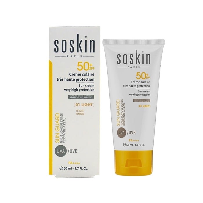 کرم ضد آفتاب رنگی با محافظت بسیار بالا SOSKIN SPF50، قدرت محافظتی بسیار بالایی دارد، مقاوم در برابر طیف گسترده نور UVA است، پوست را نرم و مرطوب نگه میدارد، از خشک شدن آن جلوگیری میکند، فاقد مواد مضر و حساسیتزا است، رد سفیدی به جا نمیگذارد. با خرید ضد آفتاب رنگی با محافظت بالای ساسکین از محصولی با شاخص ++++PA برخوردار میشوید که تا 98% از چروک ناشی از آفتاب جلوگیری میکند.
