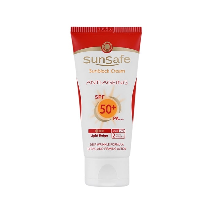کرم ضد آفتاب و ضد چروک بژ روشن SunSafe SPF50، به مدت 2 ساعت در برابر اشعه UVA و UVB از پوست مراقبت میکند، باعث تحریک و افزایش سنتز کلاژن میشود، چین و چروک را کاهش میدهد و از ایجاد آن جلوگیری میکند، خاصیت سفت و لیفت کردن پوست دارد، سبب بازسازی سلولی و کاهش عمق چروکها میشود، خاصیت ارتجاعی پوست را بهبود میبخشد و ضد جوش و ضد رادیکالهای آزاد است. اگر به دنبال خرید ضد آفتاب با ویژگی ضد چروک هستید، کرم ضد آفتاب و ضد چروک SPF50 سان سیف را به شما پیشنهاد میکنیم.