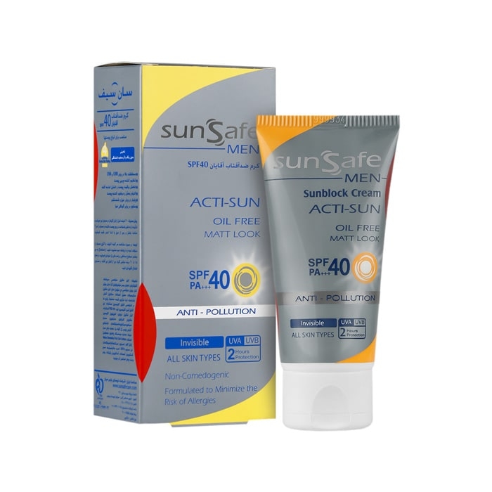 کرم ضد آفتاب فاقد چربی آقایان SunSafe SPF40، حاوی بیسوکتریزول، اکتینوکسات، آووبنزن، اکتیسالات و اکتیل تریازون است و از پوست در برابر طیف UVA و UVB محافظت میکند، با بهرهگیری از Sepicontrol A5 و روغن درخت چای سبب کنترل ترشح چربی و مهار رشد باکتریهای مولد آکنه میشود، عصاره جینسینگ موجود در آن خطوط ریز را کاهش میدهد، باعث هیدراتاسیون پوست میشود و از سد پوستی محافظت میکند. کرم ضد آفتاب فاقد چربی آقایان SPF40 سان سیف، گزینه خوبی برای خرید ضد آفتاب برای محافظت از پوست آقایان است.