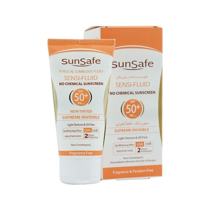 فلوئید ضد آفتاب فیزیکال مناسب پوست حساس SunSafe SPF50، از پوست در برابر اشعههای UVA وUVB محافظت میکند، مانع از بروز پیری زودرس میشود، ضد التهاب و التیام بخش است، ماندگاری بالایی دارد، از تحریکات، حساسیت و قرمزی پوست جلوگیری میکند، دارای ویتامینB5 و عصارههای گیاهی مانند آلوئهورا است، موجب تامین و حفظ رطوبت پوست، نرمی و لطافت پوست و رفع خشکی و احساس کشیدگی در پوست میشود، بافت آسیب دیده پوست را ترمیم و بازسازی میکند، با خاصیت آنتی اکسیدانی خود به خوبی از پوست در برابر رادیکالهای آزاد مراقبت میکند و از بروز ضایعات بدخیم پوستی پیشگیری مینماید. فلوئید ضد آفتاب فیزیکال مناسب پوست حساس SPF50 سان سیف، گزینه مناسبی برای خرید ضد آفتاب غیر شیمیایی است.
