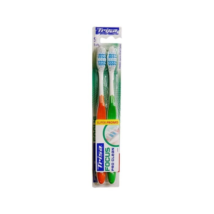 مسواک فوکوس پرو کلین نرم دو عددی Trisa، از پرزهای سر گرد تشکیل شده است، دندانها و لثه را دچار خراشیدگی نمیکند، به مینای دندان آسیب نمیزند، الیاف آن با قد بلند و کوتاه کنار هم قرار گرفتهاند و فواصل بین دندانی و سطوح لثه را تمیز میکنند، دسته آن دو قسمتی و غیر لغزنده است، در پشت مسواک شیارهای ظریفی تعبیه شده است تا به خوبی در دست جا بگیرد و سر نخورد و مجهز به پاک کننده زبان است.