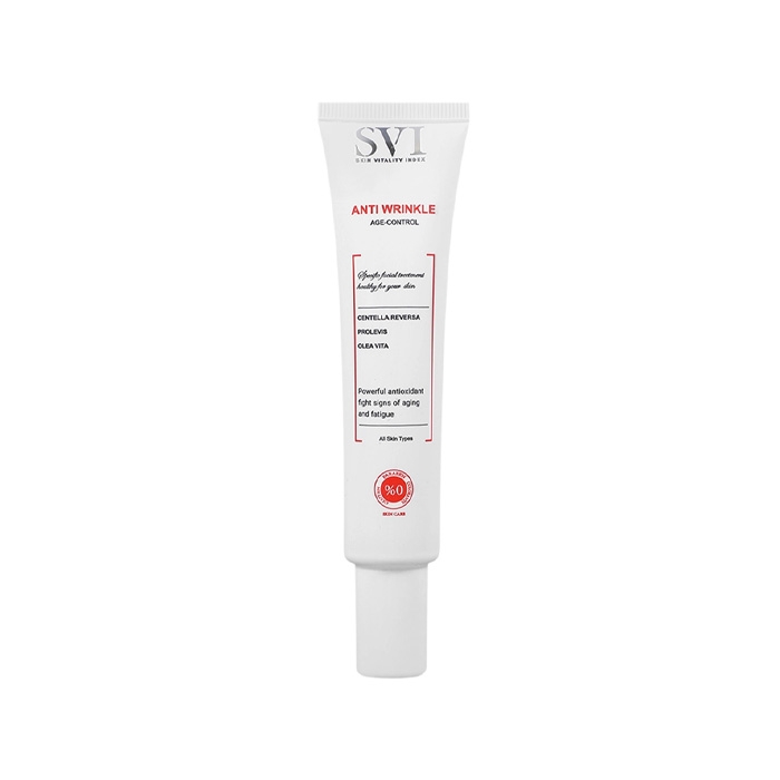 کرم ضد چروک صورت و گردن SVI، ظاهر چین و چروک، خطوط ریز و علائم پیری را به وضوح کاهش میدهد، خاصیت آنتی اکسیدانی دارد، آسیب ناشی از رادیکالهای آزاد را کاهش میدهد، سبب نوسازی سلولی و تولید کلاژن میشود، استحکام و قابلیت انعطاف پوست را بهبود میبخشد، ایجاد چین و چروک را به تعویق میاندازد و رطوبت از دست رفته پوست را بازمیگرداند.