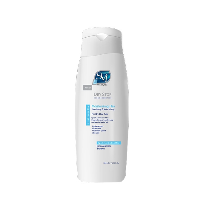 شامپو درای استاپ مناسب موی خشک SVI، رطوبت مورد نیاز پوست سر و موها را تامین میکند، باعث ترمیم و بازسازی موهای خشک و آسیب دیده، جلوگیری از دو شاخه شدن انتهای تارهای مو و ایجاد موخوره و افزایش خون رسانی به فولیکول و تقویت آن میشود، علائم التهابی پوست سر مانند سوزش و خارش را تسکین میدهد، حاوی مواد آنتی اکسیدان است و از پوست سر و موها در برابر آلودگیهای محیطی محافظت میکند. این محصول ضخامت و استحکام موها را افزایش میدهد.