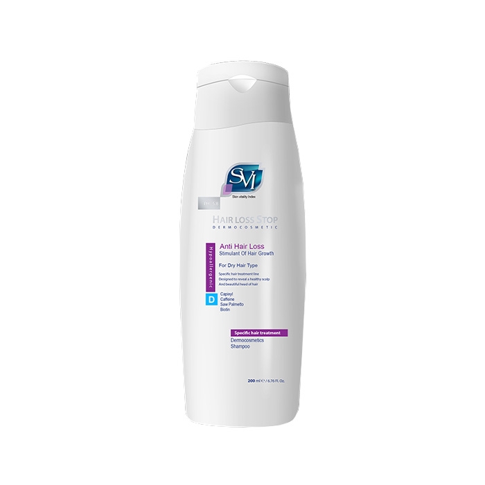 شامپو ضد ریزش استاپ دی مناسب موی خشک SVI، سرشار از مواد تقویت کننده و مغذی است، باعث بهبود عملکرد چرخه رشد مو و کنترل و کاهش ریزش مو میشود، گردش خون در پوست سر را افزایش میدهد، مواد مغذی و اکسیژن مورد نیاز ریشه مو را به شکل بهتری به فولیکولها میرساند، باعث تقویت و ترمیم موهای آسیبدیده، تقویت ریشه و ساقه مو، افزایش سطح انرژی سلولهای مو، کنترل ریزش مو و افزایش رویش موهای جدید میشود، استحکام و انعطاف پذیری موها را افزایش میدهد و خاصیت آبرسانی، آنتی اکسیدانی و ضد التهابی دارد.