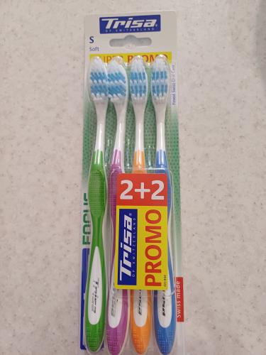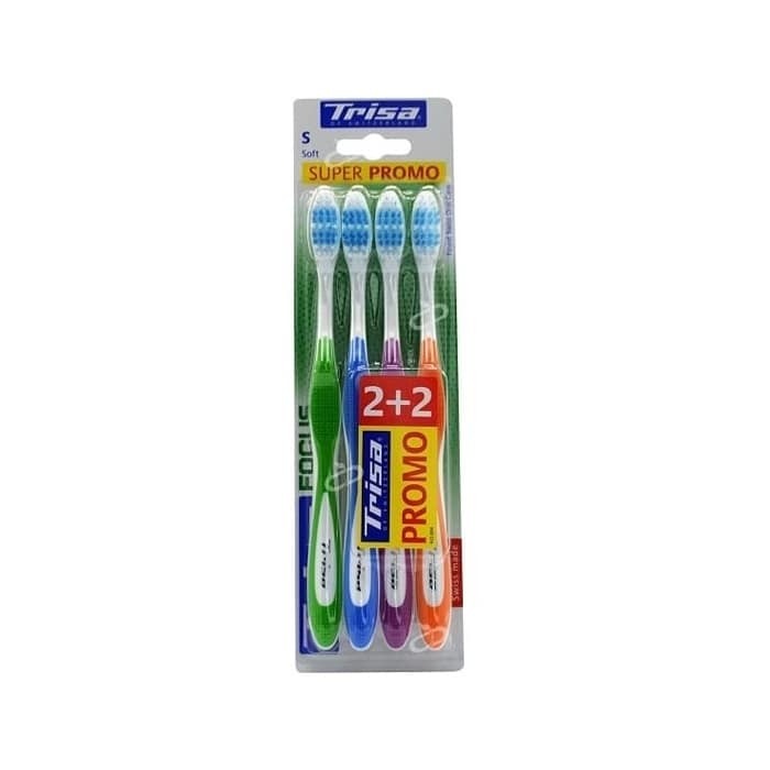 مسواک فوکوس پرو کلین نرم چهار عددی Trisa، از پرزهای سر گرد تشکیل شده است، دندانها و لثه را دچار خراشیدگی نمیکند، به مینای دندان آسیب نمیزند، الیاف آن با قد بلند و کوتاه کنار هم قرار گرفتهاند و فواصل بین دندانی و سطوح لثه را تمیز میکنند، دسته آن دو قسمتی و غیر لغزنده است، در پشت مسواک شیارهای ظریفی تعبیه شده است تا به خوبی در دست جا بگیرد و سر نخورد و مجهز به پاک کننده زبان است.
